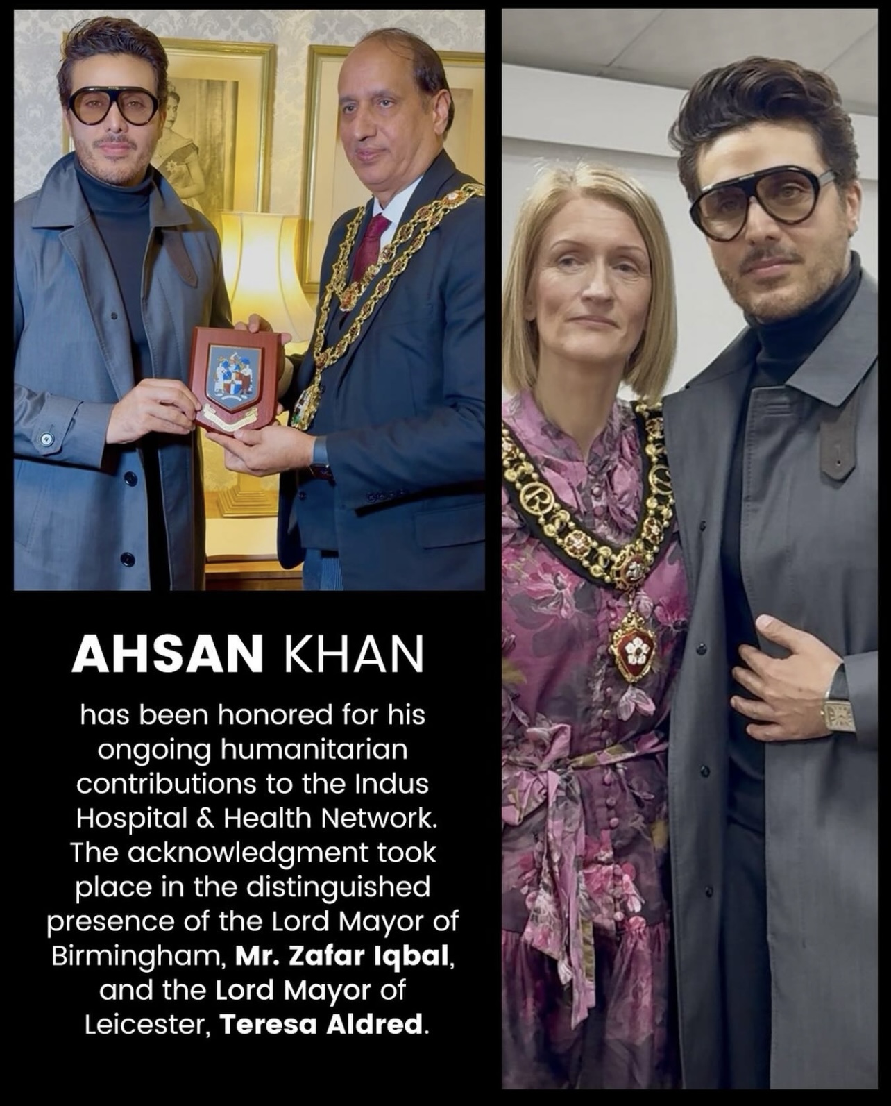 Ahsan Khan proves his heart is as big as his talent. The actor was honored in the United Kingdom. He received recognition from the Lord Mayors of Birmingham and Leicester. This was for his support of the Indus Hospital Health Network (IHHN).