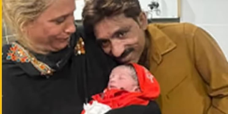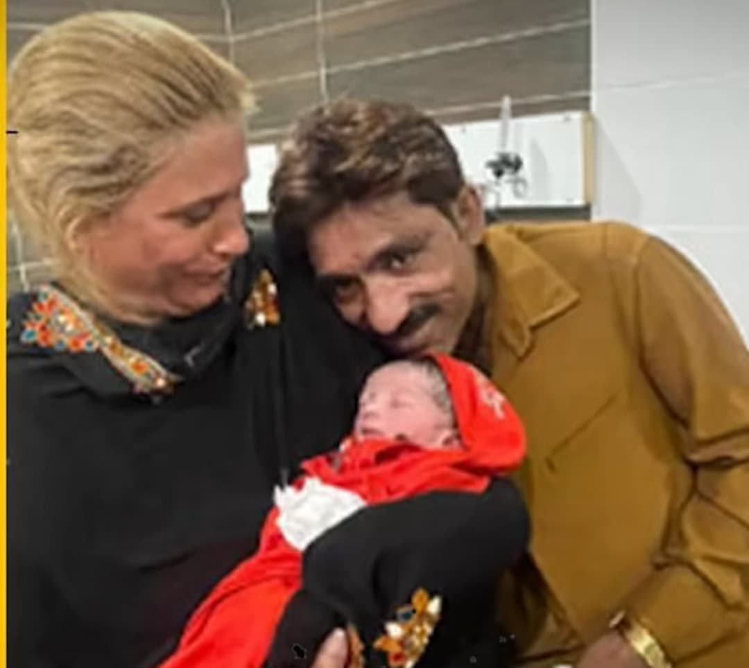 Social-media posts claim that Naseebo Lal gave birth recently. A photo shows her and her husband with a newborn in what looks like a hospital room.