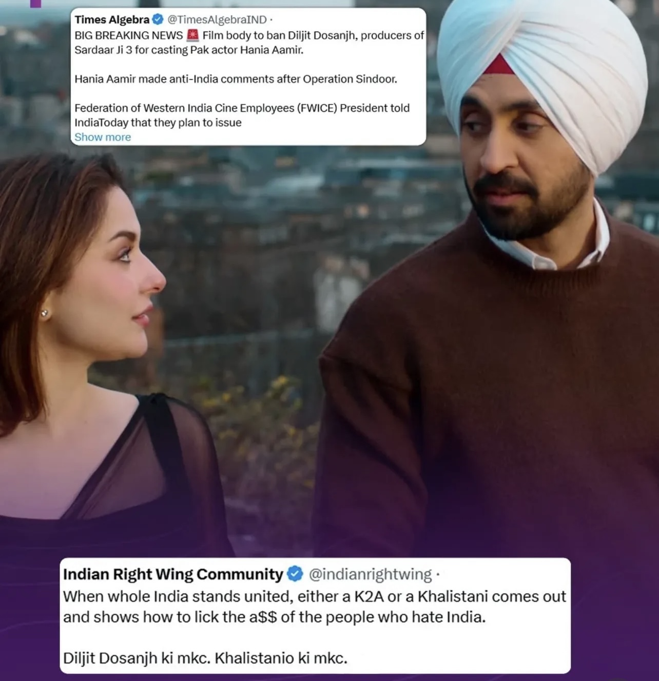 Indian news outlets and social media users are heavily criticizing Dosanjh. Many accuse him of ignoring tensions between India and Pakistan by working with a Pakistani star. Calls for a boycott are growing.