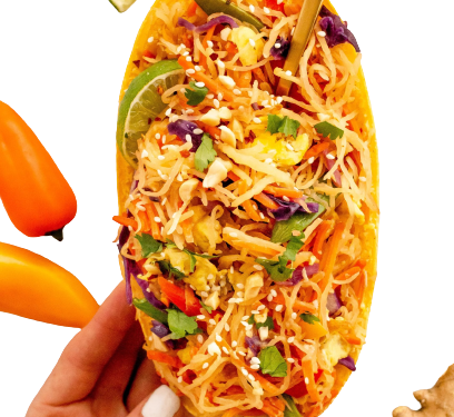 Similar to zucchini, you can use spaghetti squash as a lower-calorie pasta substitute. When you cook it, you can scrape its flesh into strands resembling spaghetti.
