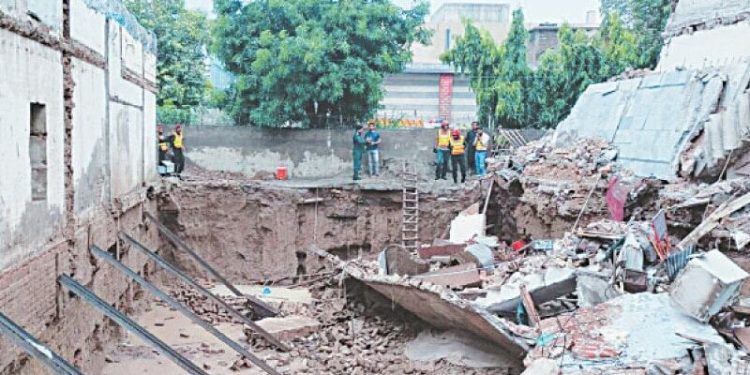 A devastating incident shook Faisalabad’s Satiana Road today. Ghani Cloth Plaza on Street No. 9 suddenly collapsed, turning the multi-story building into a pile of rubble.