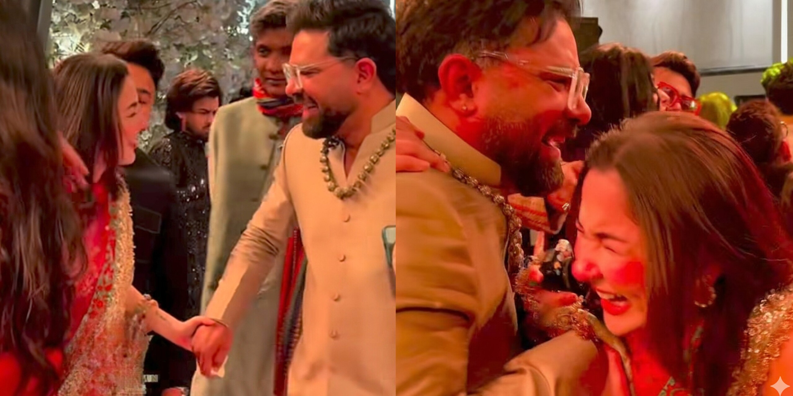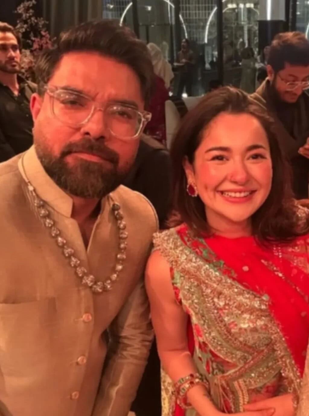 Videos circulating online show the two actors chatting enthusiastically, laughing, and reminiscing about old times. Hania Aamir looked stunning in a classic red traditional outfit, while Yasir Hussain opted for an elegant sherwani. Their excitement and comfort around each other caught the attention of fans and critics alike.