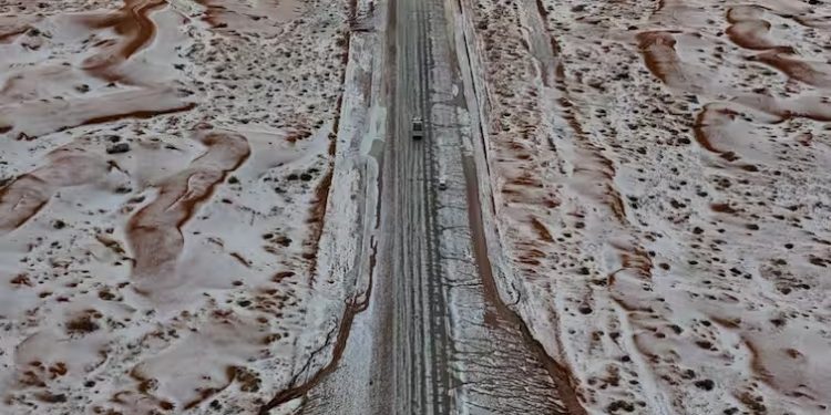 In a historic first, Saudi Arabia’s Al-Jawf region has experienced snowfall, stunning locals and drawing attention worldwide. This rare weather phenomenon, accompanied by heavy rain and hail, has transformed the usually dry desert into a winter wonderland. It marks a significant moment in Saudi Arabia’s weather history.