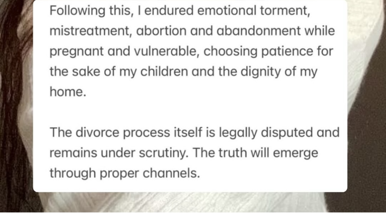 Sannia Ashfaq (@sannia_ashfaq2) posted a statement. She addressed the separation publicly. Her account covered several key issues. She mentioned facing allegations. More so she discussed ongoing legal proceedings. She also explained the marriage circumstances from her perspective.