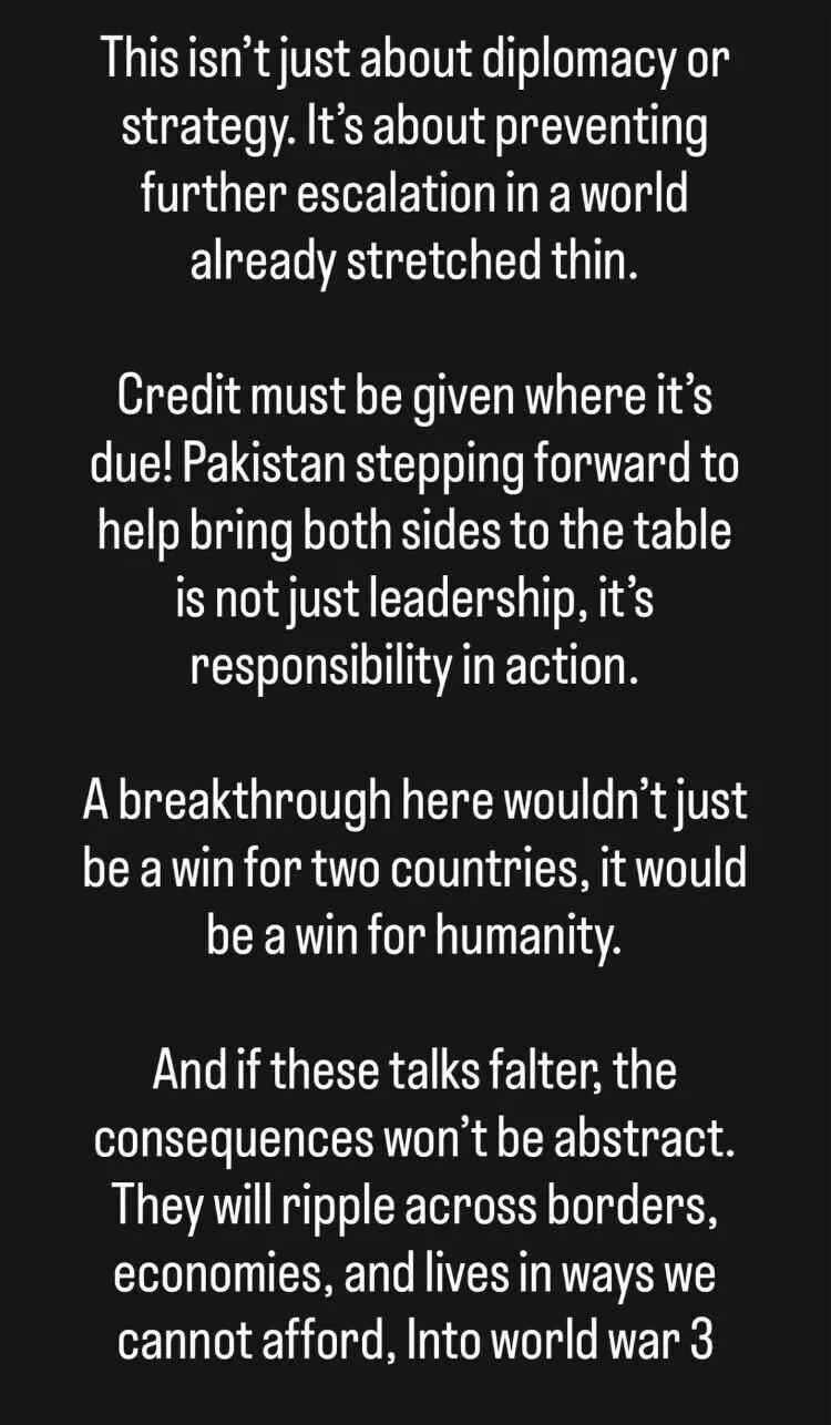 Chinoy stressed that success in the Islamabad Talks would be a victory not just for the two nations, but for humanity as a whole. However, failure could risk further escalation in an already strained world.