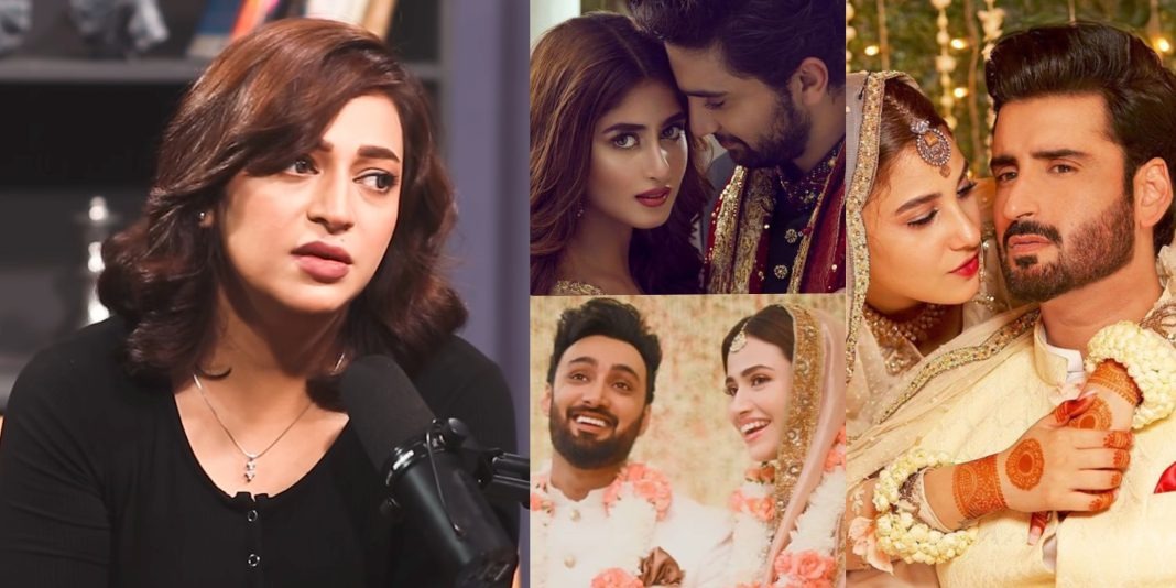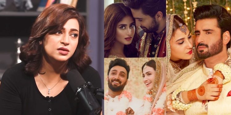 In a recent appearance on ARY Digital’s podcast hosted by Ayaz Samoo, Hiba Ali opened up about a concerning trend in relationships—divorces caused by materialistic competition, especially within the showbiz world.