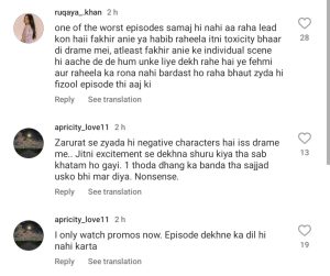 Following the airing of this episode, fans who were once loyal to “Mayi Ri” have begun to view the show as depressing, monotonous, and saddening. Many have criticized the creators for resorting to unnecessary plot twists solely for the purpose of boosting ratings. A disgruntled social media user commented, “It seems that the drama makers are running low on budget, and that’s why they’re killing off all the likable characters.” In particular, fans have expressed their disdain for the characters Habib and Raheela, with most fervently hoping for Habib’s downfall due to his selfishness.