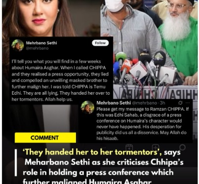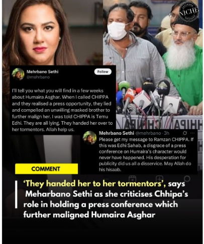 Meharbano Sethi has taken to X (formerly Twitter) to publicly denounce Chhipa Welfare Association’s handling of the Humaira Asghar Ali case, slamming the NGO for holding a press conference that, in her words, “further maligned Humaira instead of protecting her.”