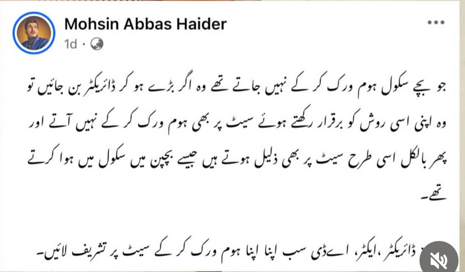 Pakistani star Mohsin Abbas Haider shared a strong message. He targeted film and drama directors. His post called out a lack of preparation. This has sparked a major conversation.