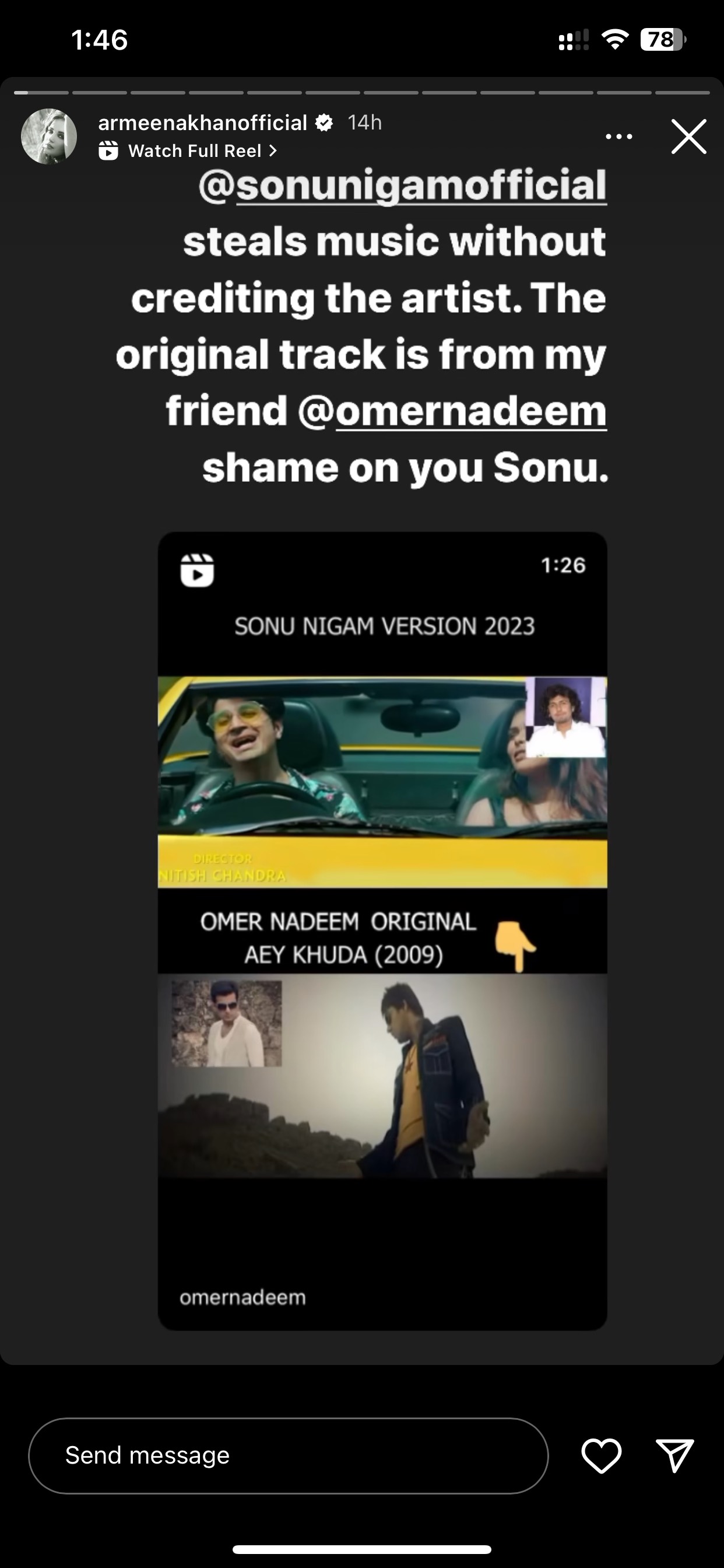 Recently in an Instagram story she accused Sonu Nigam of song theft.