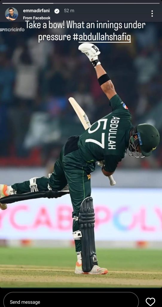 The Pakistani cricket team’s exhilarating performance thrilled their fans and celebrities alike. Fervently, Pakistani celebrities have praised Abdullah Shafique and Muhammad Rizwan’s efforts in this critical match, with their social media posts resonating nationwide.
