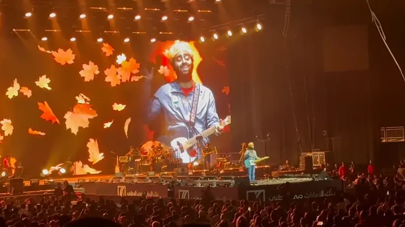 A recent Arijit Singh concert turned into an unforgettable evening when a Pakistani man took over the Indian singer’s show with a mesmerizing performance. A video circulating on social media shows Arijit Singh handing the mic to a fan from Pakistan who effortlessly sang the classic “Tere Bin Nai Lagda Dil Mera”—captivating the entire audience.
