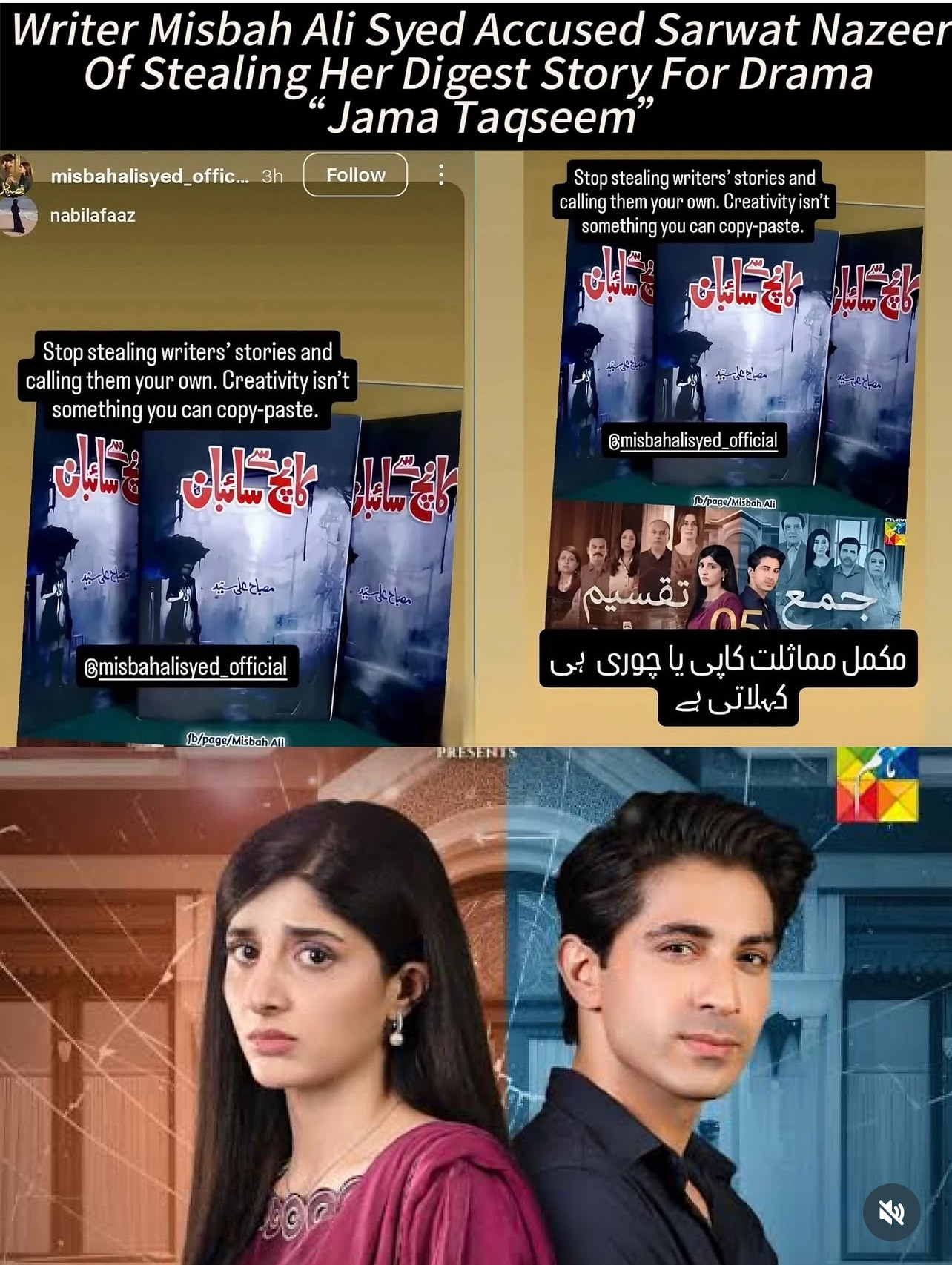 The hit drama “Jama Taqseem” faces serious plagiarism allegations. Writer Sarwat Nazeer is accused of stealing a story from author Misbah Ali Syed.