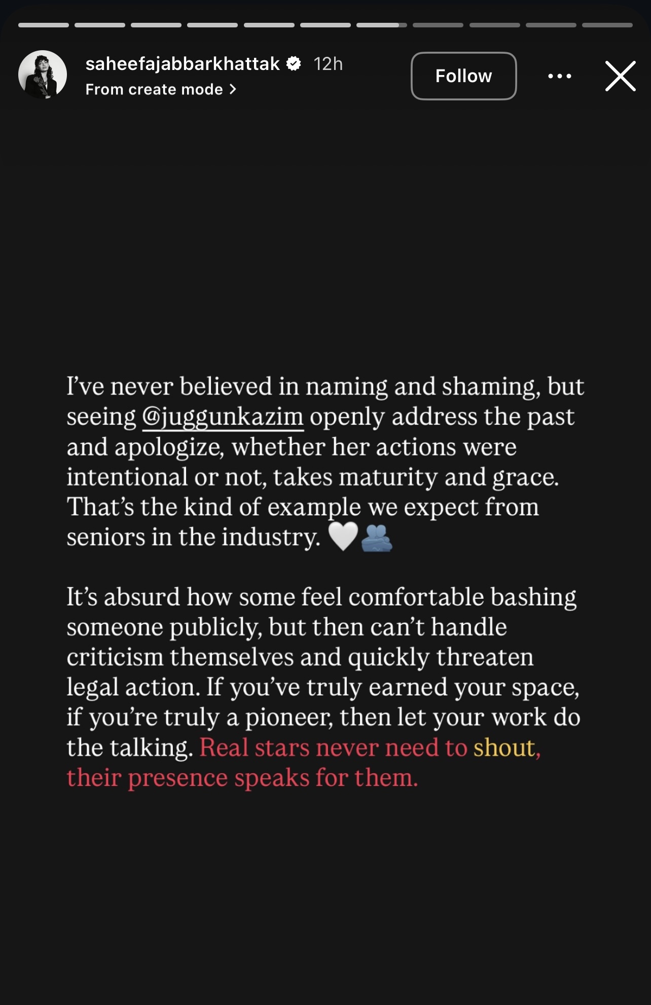 Khattak appreciated Juggan Kazim for owning her mistake. Unlike others, Kazim apologized instead of threatening legal action.