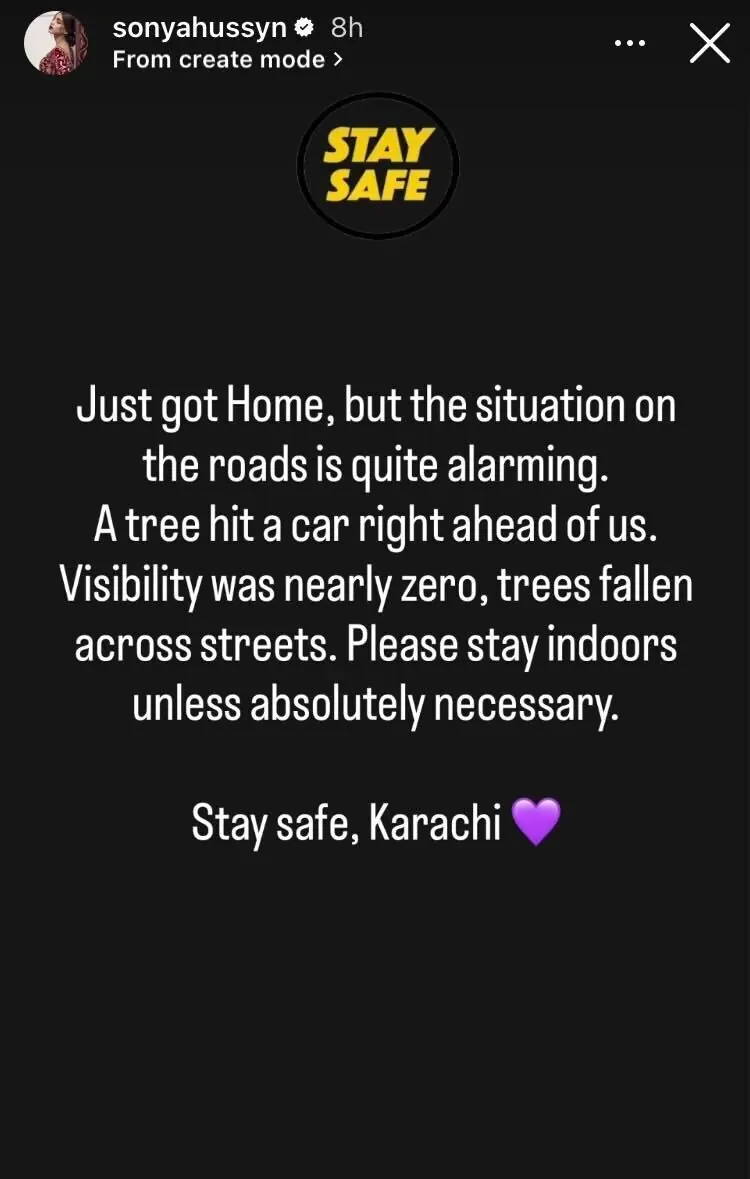 Actor Agha Ali revealed how rainwater seeped into his high-rise apartment, highlighting how even indoor spaces weren’t safe. Others, including Shaista Lodhi and Sonya Hussyn, expressed concern and دعا for affected residents.