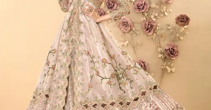 Embroidered bouquets play a crucial role in enhancing the overall look. Yet, at Adnan Pardesy Studio, our inclination leans toward intricate full-embroidered jaal or cut work, as we believe these elements truly elevate the dress with their captivating allure.