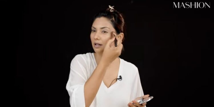 To achieve her flawless appearance, Marshall meticulously detailed her makeup routine, starting with Kryolon’s TV makeup stick and Masarrat Misbah’s foundation in Amond & Beige shades. She then applied Sephora’s translucent setting powder and Etude’s compact powder in B2 shade for a matte finish.