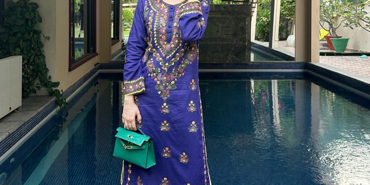 is truly remarkable in this happening dress from Kanwal Moosa