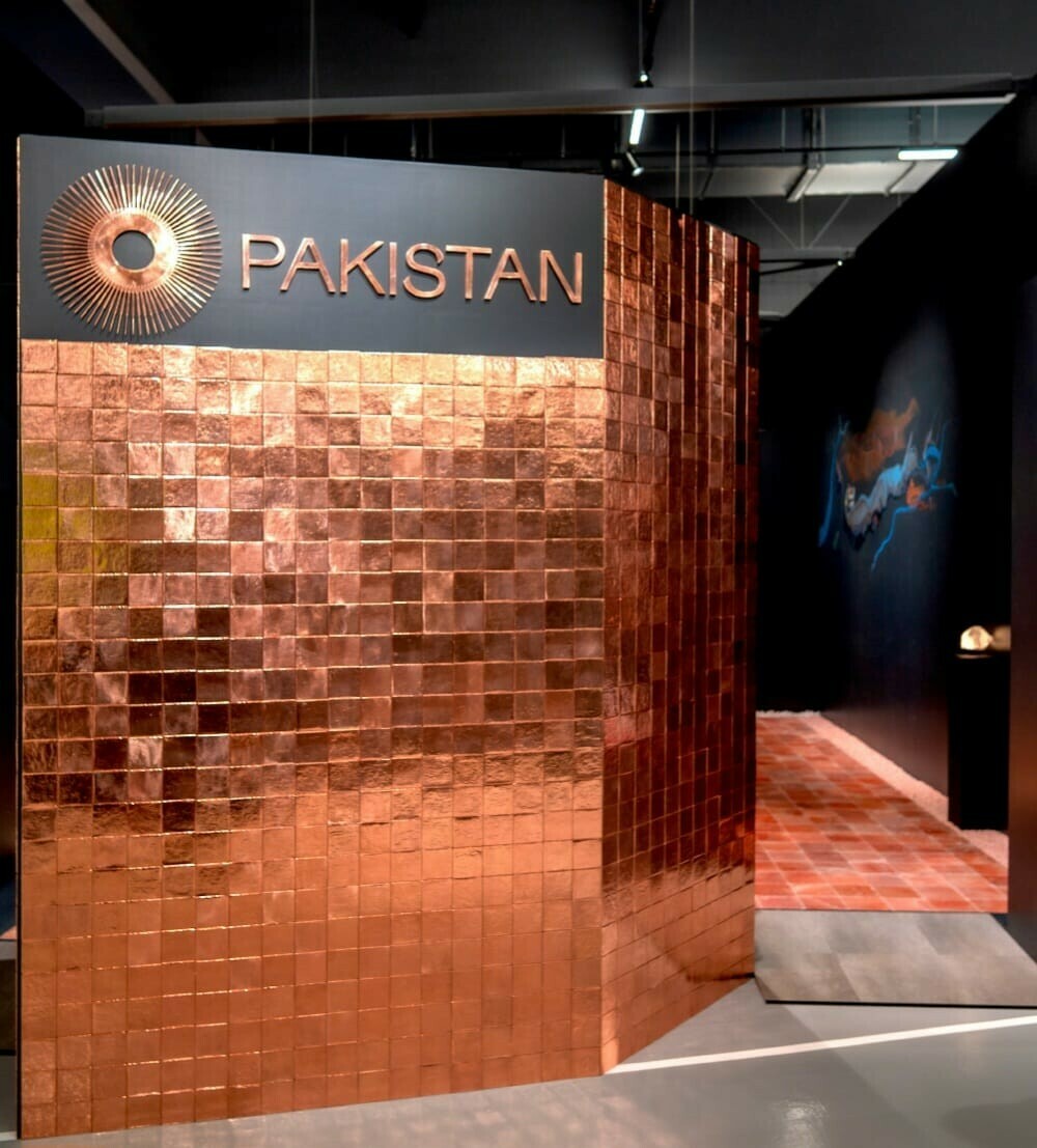 Visitors are first greeted by a shimmering façade of copper tiles handcrafted by Peshawar artisans. Inside, pink salt tiles from Kallar Kahar line the floor, while poetic verses by Zehra Nigah echo softly alongside visuals by Farooq Mustafa Maeda and filmmaker Nisar Malik. The experience is immersive, intimate, and deeply sensory — a stark contrast to the flashy LED theatrics of other pavilions.