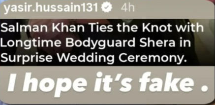 In a surprising twist of events, a viral headline claimed Bollywood superstar Salman Khan secretly tied the knot with his longtime bodyguard, Shera. The internet was quick to react — but none faster than Pakistani actor Yasir Hussain, whose sarcastic Instagram story drew major attention.